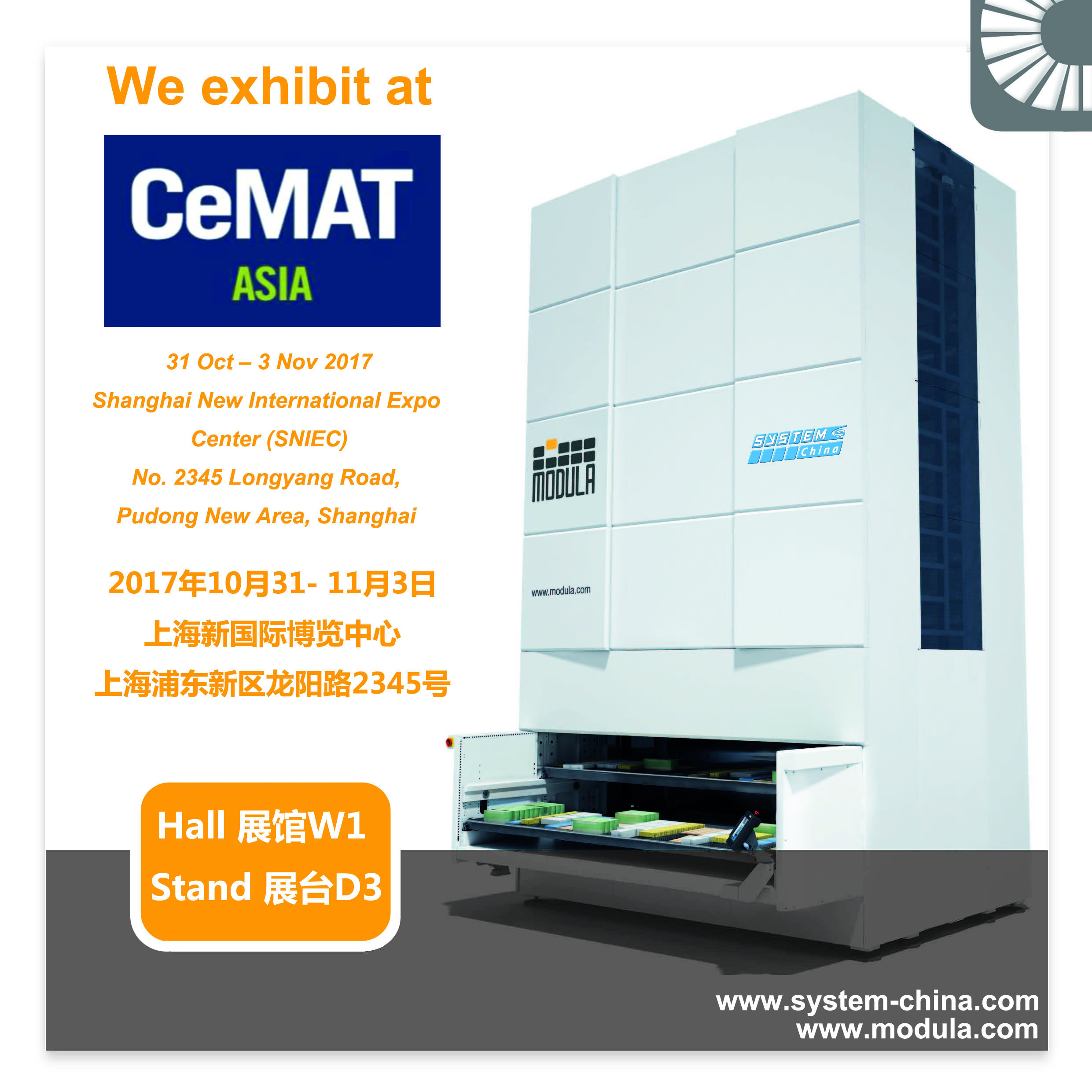 Modula is excited to announce its participation as exhibitor at the upcoming CEMAT ASIA 2017 , held from 31 October to 3 November in Shanghai.