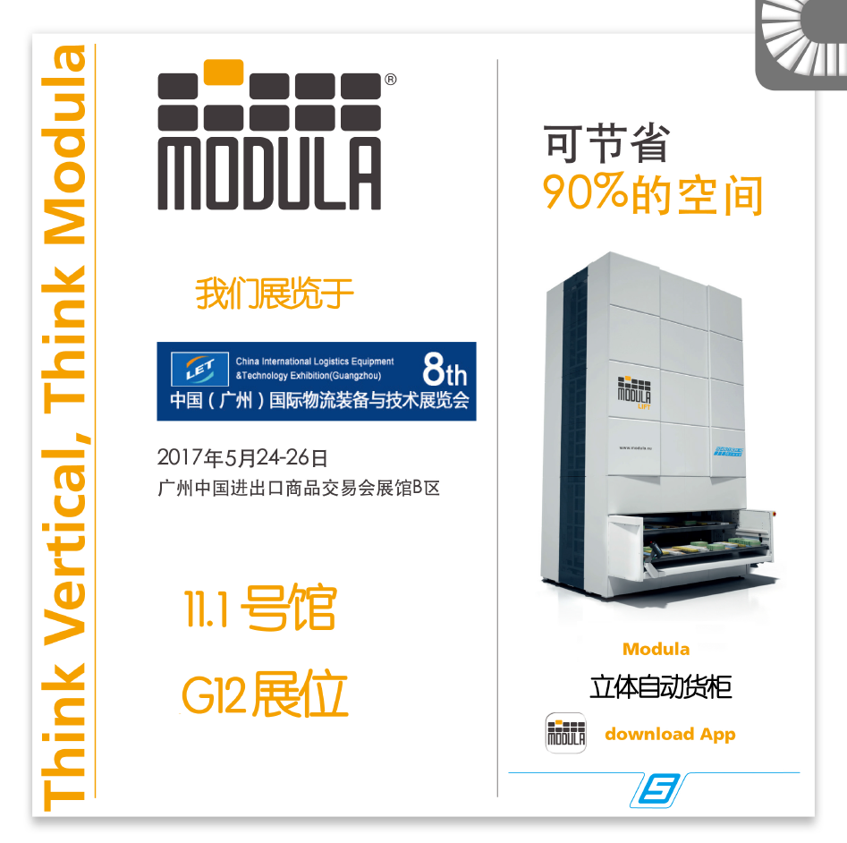 | MODULA exhibits at LETCHINA China International Logistics Equipment and Technology Exhibition (Guangzhou) Date: May 24 – 26 Place: Area B, China Import and Export Fair Complex, Guangzhou Stand: 11.1 G12 |